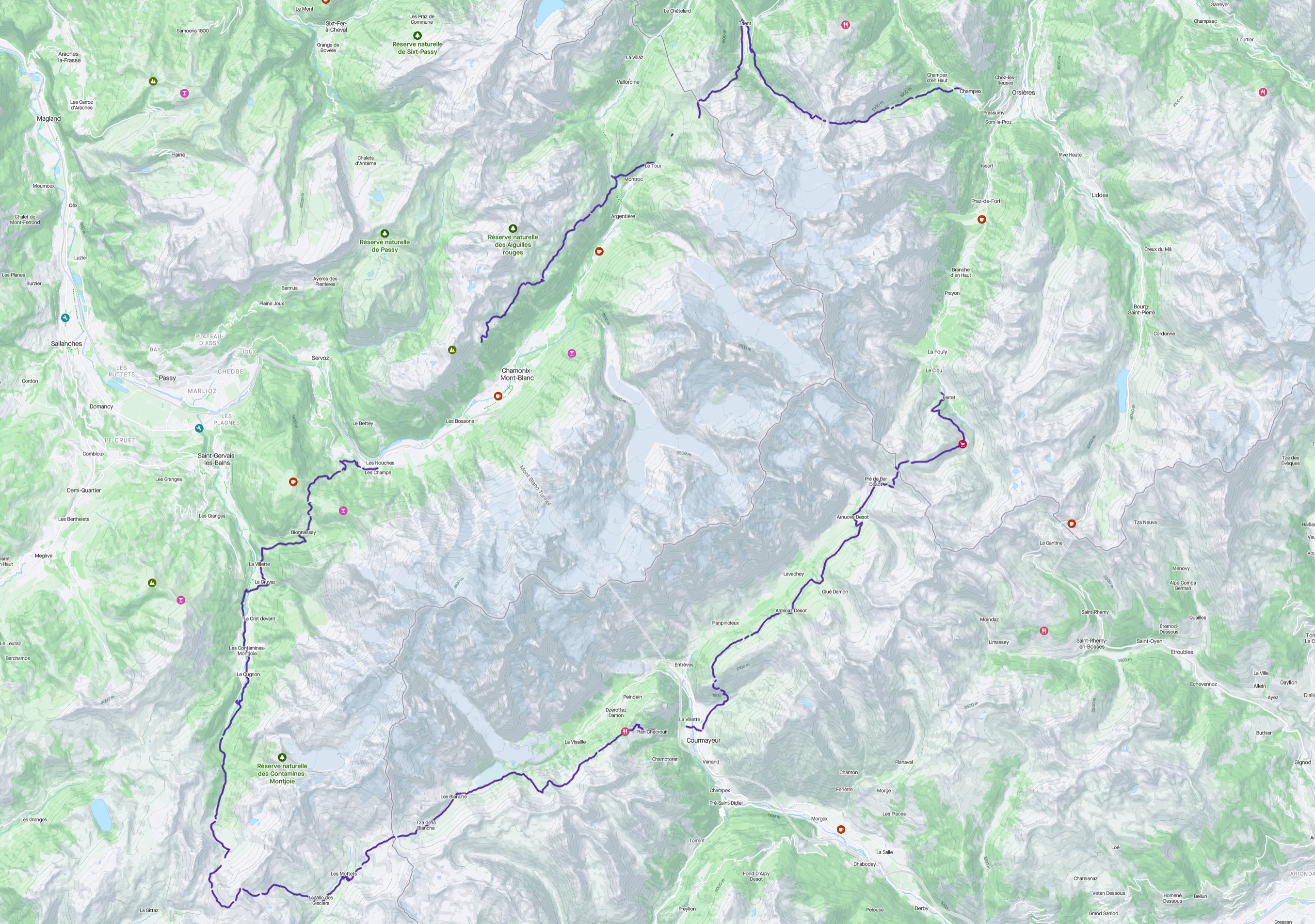 The Tour du Mont Blanc is a an approximately 165km trail around the Mont Blanc massif, starting and ending in Chamonix, France while crossing through France, Italy and Switzerland. Traditionally, it’s hiked counter-clockwise. Why? I don’t know. At the end of August, it becomes the route of the most famous trail running event “UTMB (Ultra Trail du Mont Blanc)” and the top runners run the loop in under 20h - kaputt.